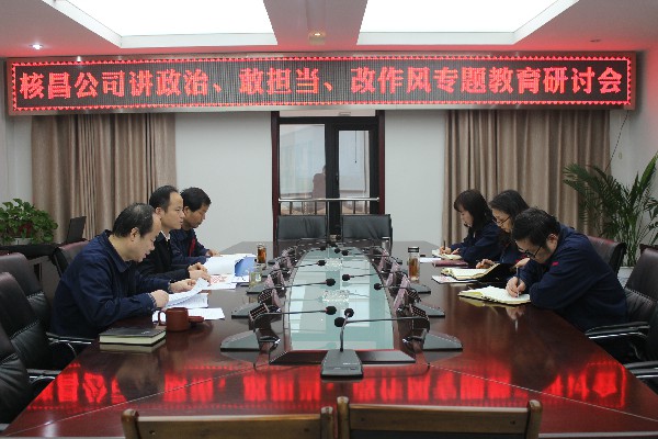 1月14日,核昌公司黨委在公司小會議室組織公司領(lǐng)導(dǎo)班子成員召開2019年一月份黨委中心組學(xué)習(xí)(擴(kuò)大)會議暨講政治、敢擔(dān)當(dāng)、改作風(fēng)專題教育研討會。會議由公司黨委委員、總經(jīng)理楊昭主...