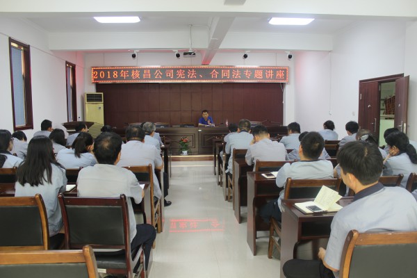 2018年6月29日,核昌公司在公司大會議室舉行憲法、合同法專題講座,公司中層以上干部、各部門采購人員、綜合干事等40余人參加了培訓。本次專題講座是核昌公司推進“七五”普法工作全...