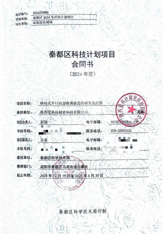 經過公司科研團隊的辛勤努力與積極申報,愛科仕公司移動式井口應急噴淋裝置的研發及應用成功獲批咸陽市秦都區2024年科技計劃項目,并獲得2024年秦都區科技計劃項目成果轉化類經費補助...