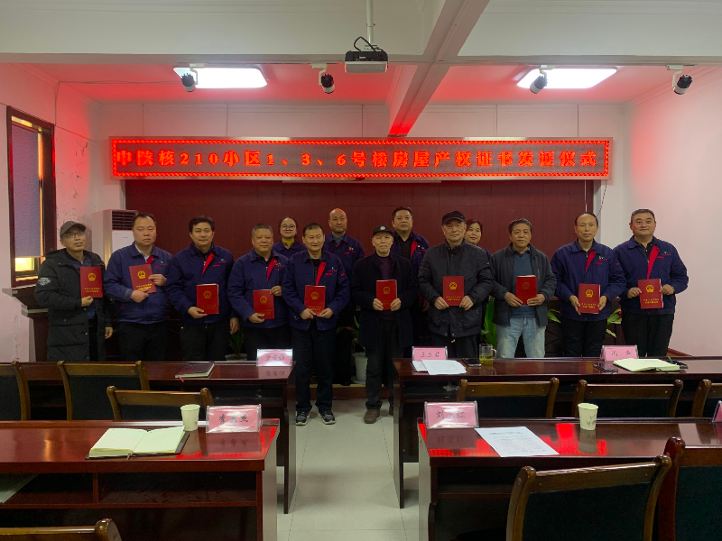 小小的產權證,事關群眾的大民生。由于歷史原因,二一〇小區1、3、6號樓業主的房產證十多年沒能辦下來。“群眾冷暖掛心上,為民辦事解難題”,核昌公司急群眾所急,組織房產證辦理工作專班,由二一〇物業公司牽頭,經過3年多的堅持和努力,終于解決了這個十多年未能解決的難題!
