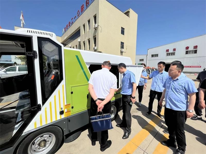 首先,白亞偉一行先行參觀了公司生產區,深入現場實地了解新能源清掃車系列產品的研發、生產、銷售及主推產品性能、特點、適用范圍等情況。隨后,在會議室進行座談。