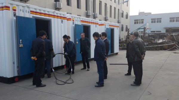驗收中,趙總經理等人對此項目的工作給予充分的肯定,并提出了吊索房吊索擺放,按統一標準執行,吊索擺放到位后需可靠固定,防止運輸過程中滑落;CSG除砂罐排酸桶需增加卡箱固定,罐面上設計一個工具箱用于存放銷子等小零件和工具等改進建議,王超宏總經理對趙總等人在驗收中提出的建議表示堅決按改進意見實施,并對兩公司后期的合作充滿信心。