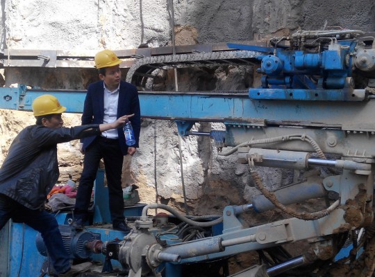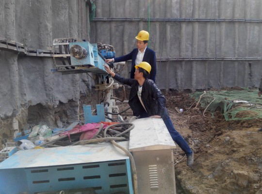 4月7日上午,公司總經理王超宏在總經理助理、綜合部部長劉彥仁的陪同下,親臨北京某房建施工現場,看望現場負責新產品HMD-7500全液壓錨固鉆機工業性試驗的同志,并對鉆機的試驗情況進行了調研。