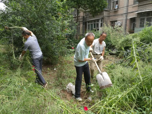 在清理過程中,不論是年齡大的還是年輕的,都是齊心協(xié)力,互相配合,干勁十足。清理垃圾、修剪樹木、拔草等各項工作井然有序。雖然中很臟、很苦、很累,但沒有一個人抱怨。