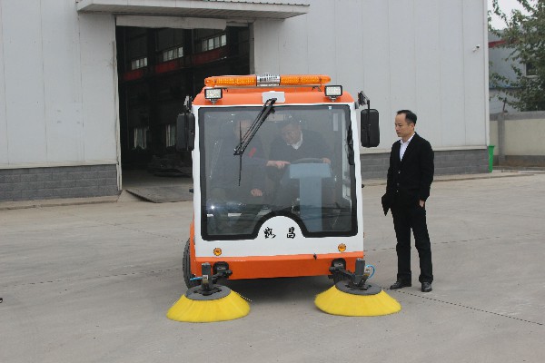 首先,作為環衛保潔方面的專家,郭董事長觀摩了二一〇研究所研發的新能源電動清掃車的制造車間及道路清掃作業演示,了解了新能源清掃車的結構及工作原理,親自試駕清掃車進行清掃作業。郭董事長認為,二一〇研究所的新能源電動清掃車是成熟、能夠適應現代城市環境保潔作業之需要的新能源環保設備。