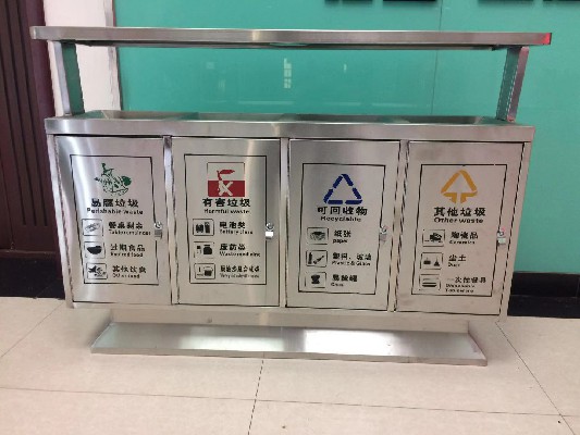 室外垃圾桶,防雨設計,讓垃圾不受風吹雨淋、二次污染;并排布置,讓投放垃圾更為方便;可拆卸內(nèi)桶,方便環(huán)衛(wèi)工人工作;不銹鋼材質(zhì),讓垃圾桶持久的守衛(wèi)藍天。