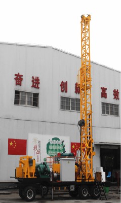HXY-1600智能型拖車鉆機組是針對砂巖鈾礦地質勘探研制的最新一代鉆探設備,其主機塔體一體化,所配備的機械動力頭傳動扭矩大,鉆進能力強,鉆井深度可達2000米,其伸縮式鉆塔高度為15米。新研發的長行程給進機構給進行程長達3.3米,是傳統立軸式鉆機給進效率的5倍,其雙液壓給進油缸最大提升力38噸,是目前國內提升能力最強的巖心鉆機。鉆機液壓系統主要元器件采用進口品牌,保障了系統穩定可靠。同時,配備電子參數顯示系統,可實時顯示鉆探過程中的動力頭轉速、給進速度、鉆具重量、給進力量等各項鉆探數據,讓操作人員及時準確掌握鉆機工作中的各項參數。