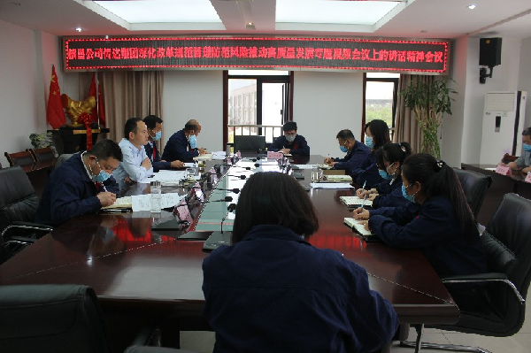 最后,黨委副書記、總經理楊昭傳達了集團公司黨委書記、董事長張斌成在集團深化改革規范管理防范風險推動高質量發展專題視頻會議上的講話精神。結合公司生產經營實際情況,從提高站位、突出重點、規范管理、精準施策四方面進行解讀。