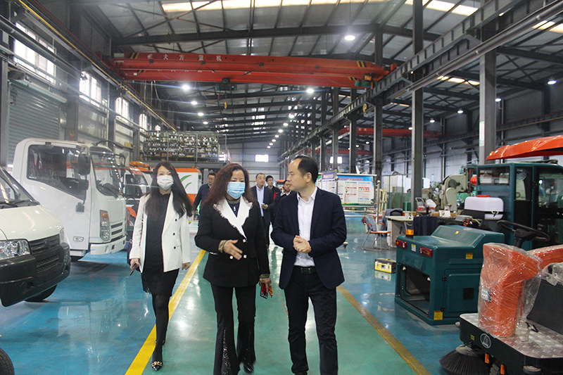 張根鳳董事長(zhǎng)一行先行參觀了公司各生產(chǎn)車間,深入現(xiàn)場(chǎng)實(shí)地了解新能源環(huán)衛(wèi)系列清掃車系列產(chǎn)品的研發(fā)、生產(chǎn)及銷售情況,重點(diǎn)對(duì)新能源設(shè)備板塊主推產(chǎn)品性能、特點(diǎn)進(jìn)行適用范圍等情況進(jìn)行詢問(wèn)。雙方在紡織工業(yè)園管委會(huì)領(lǐng)導(dǎo)陪同下參觀了咸陽(yáng)科技產(chǎn)業(yè)園,考察新能源汽車生產(chǎn)車間及相關(guān)企業(yè),并調(diào)研了咸陽(yáng)市的營(yíng)商環(huán)境。隨后,在二樓小會(huì)議室進(jìn)行座談。