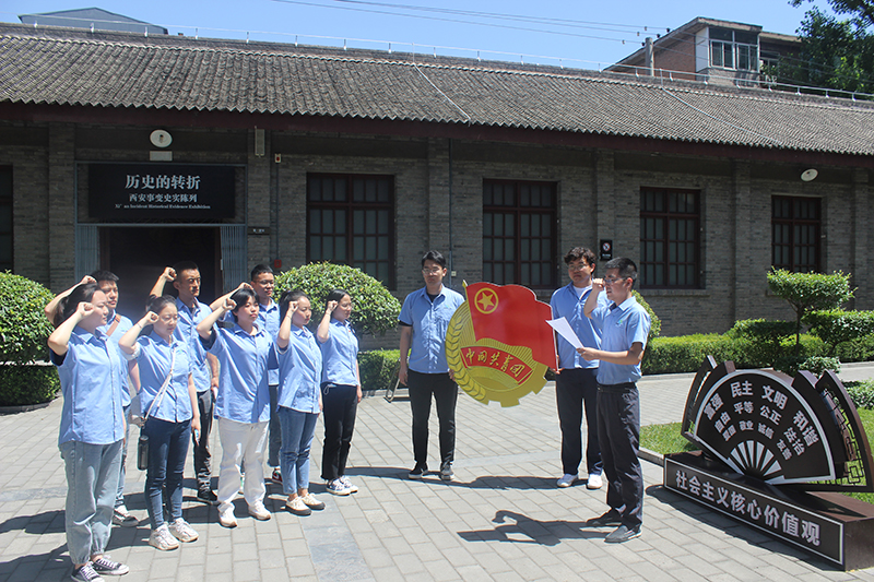 在中國共產黨建黨100周年即將來臨之際,為進一步推動團員青年深入學習黨史,提高思想政治教育及理論知識水平,讓紅色基因、革命薪火代代相傳。6月4日上午,核昌公司團委組織團員赴西安事變紀念館,開展“青春向黨·奮斗強國”主題團日活動,團委書記任聰、各團支部書記及部分團員參加。