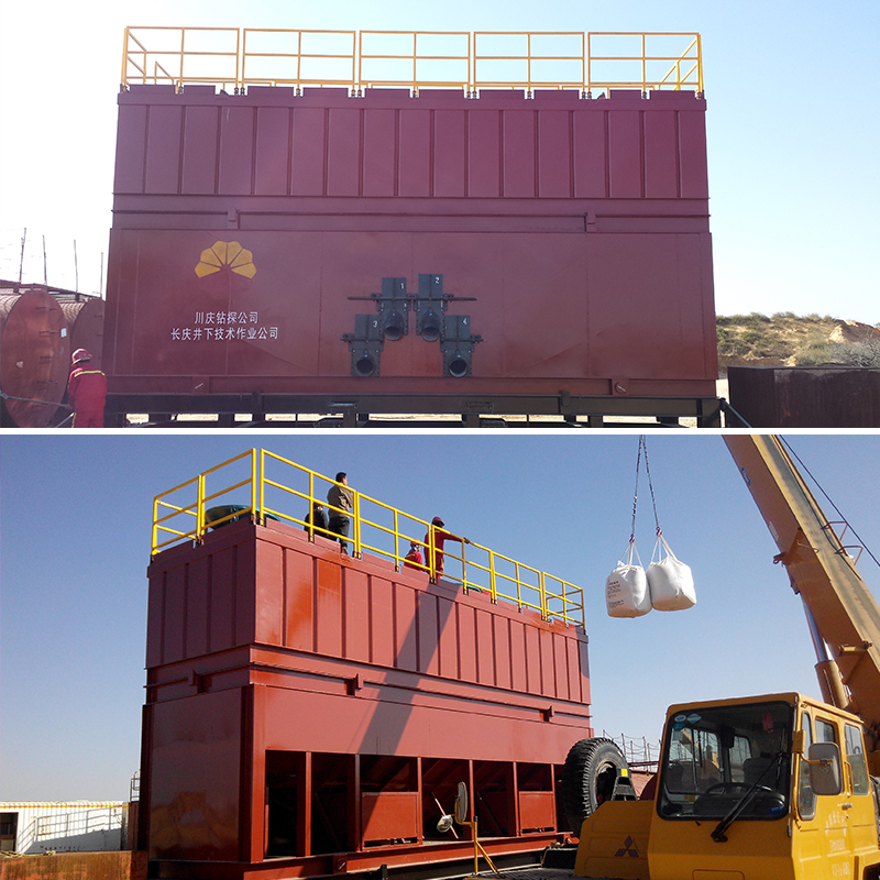 100立方沙漏主要用于石油鉆探壓裂,此設備可將大量壓裂鉆探所需的砂礫或者陶粒進行整裝分層儲備,配合取砂車進行石油壓裂鉆井作業,效率大幅度增加。