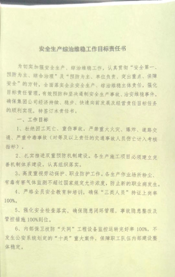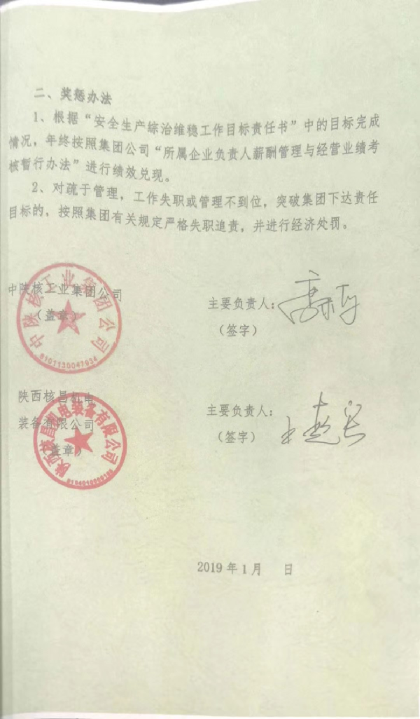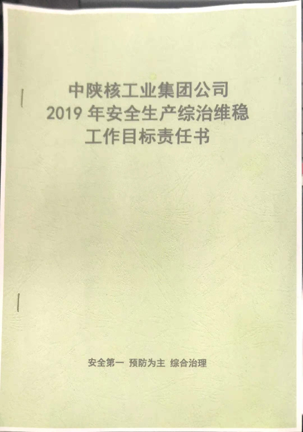 中陜核工業集團公司2019年安全生產綜治維穩工作目標責任書